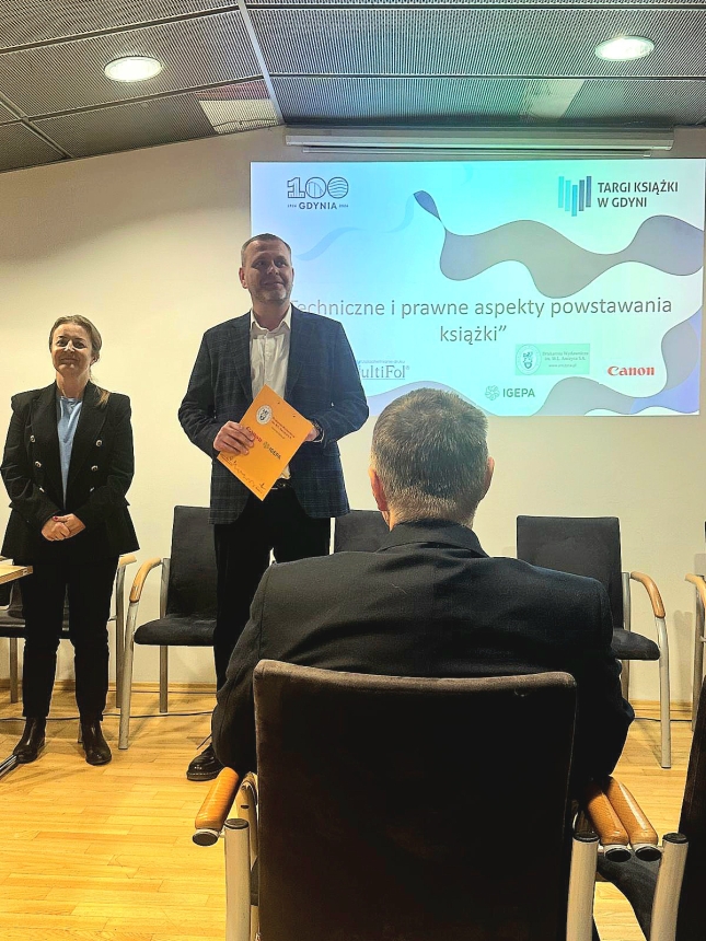 Na tak prestiżowym wydarzeniu nie zabrakło również naszej obecności. We współpracy z przedstawicielami firm: Igepa Polska Sp. z o.o., Canon Polska Sp. z o.o., Multifol Sp. z o.o. Sp. k. oraz Gdańskie Wydawnictwo Psychologiczne Sp. z o.o. zorganizowaliśmy spotkanie pt. „Techniczne i prawne aspekty powstawania książki”.