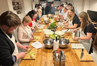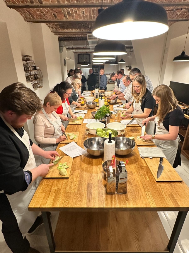 Wspólne gotowanie stało się doskonałym pretekstem do integracji, rozmów i budowania relacji w mniej formalnej, swobodnej atmosferze. Uczestnicy, pod okiem profesjonalistów, mieli okazję nie tylko rozwijać kulinarne umiejętności, lecz także wymieniać się doświadczeniami i spostrzeżeniami związanymi z codzienną współpracą oraz wyzwaniami branży.