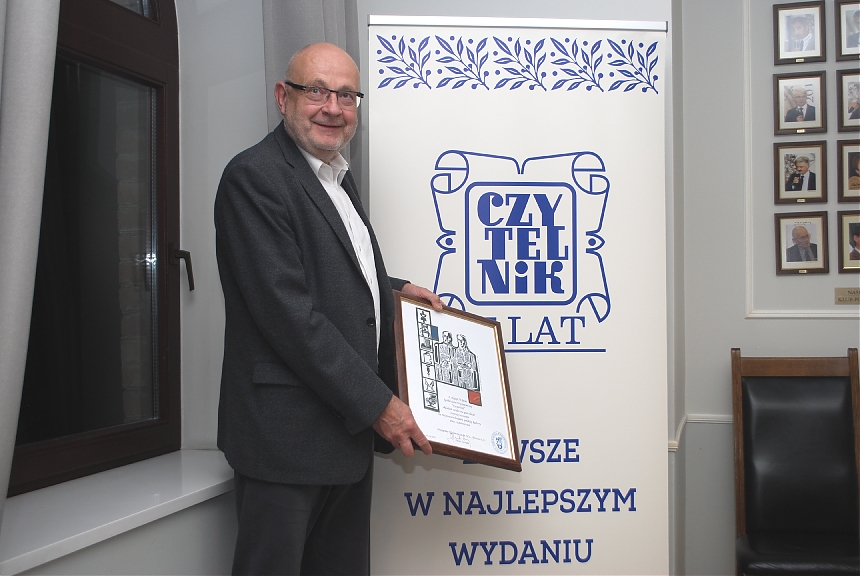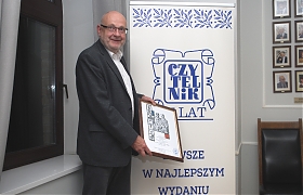 Wręczenie dyplomu z okazji 75-lecia Spółdzielni Wydawniczej "Czytelnik" przez Prezesa Zarządu Andrzeja Janickiego.