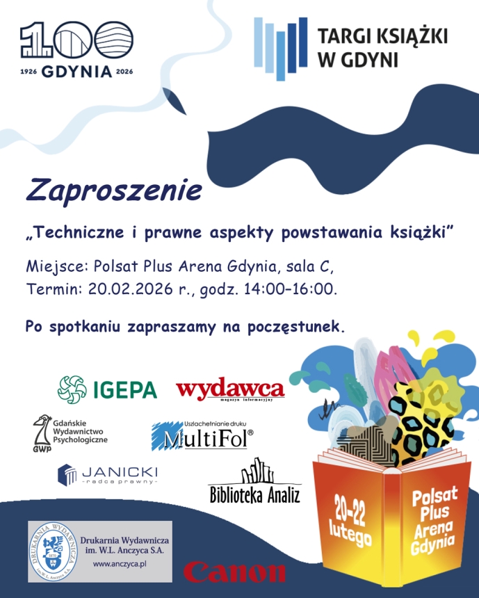 Na tak prestiżowym wydarzeniu nie zabrakło również naszej obecności. We współpracy z przedstawicielami firm: Igepa Polska Sp. z o.o., Canon Polska Sp. z o.o., Multifol Sp. z o.o. Sp. k. oraz Gdańskie Wydawnictwo Psychologiczne Sp. z o.o. zorganizowaliśmy spotkanie pt. „Techniczne i prawne aspekty powstawania książki”.